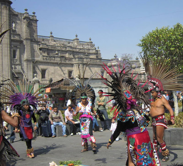Traditional Aztec preforming their dance outside Temple Mayor |